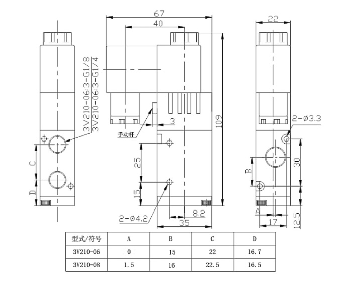 | 位置數(shù) | 二位三通 |