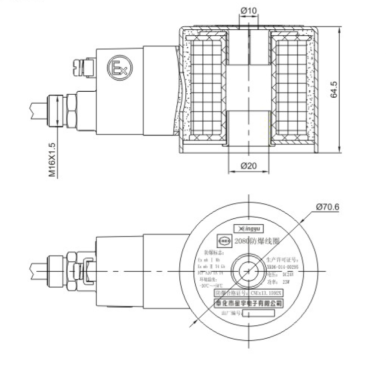 此款產(chǎn)品是20孔徑適用于二位二通大口徑防爆電磁閥線圈。